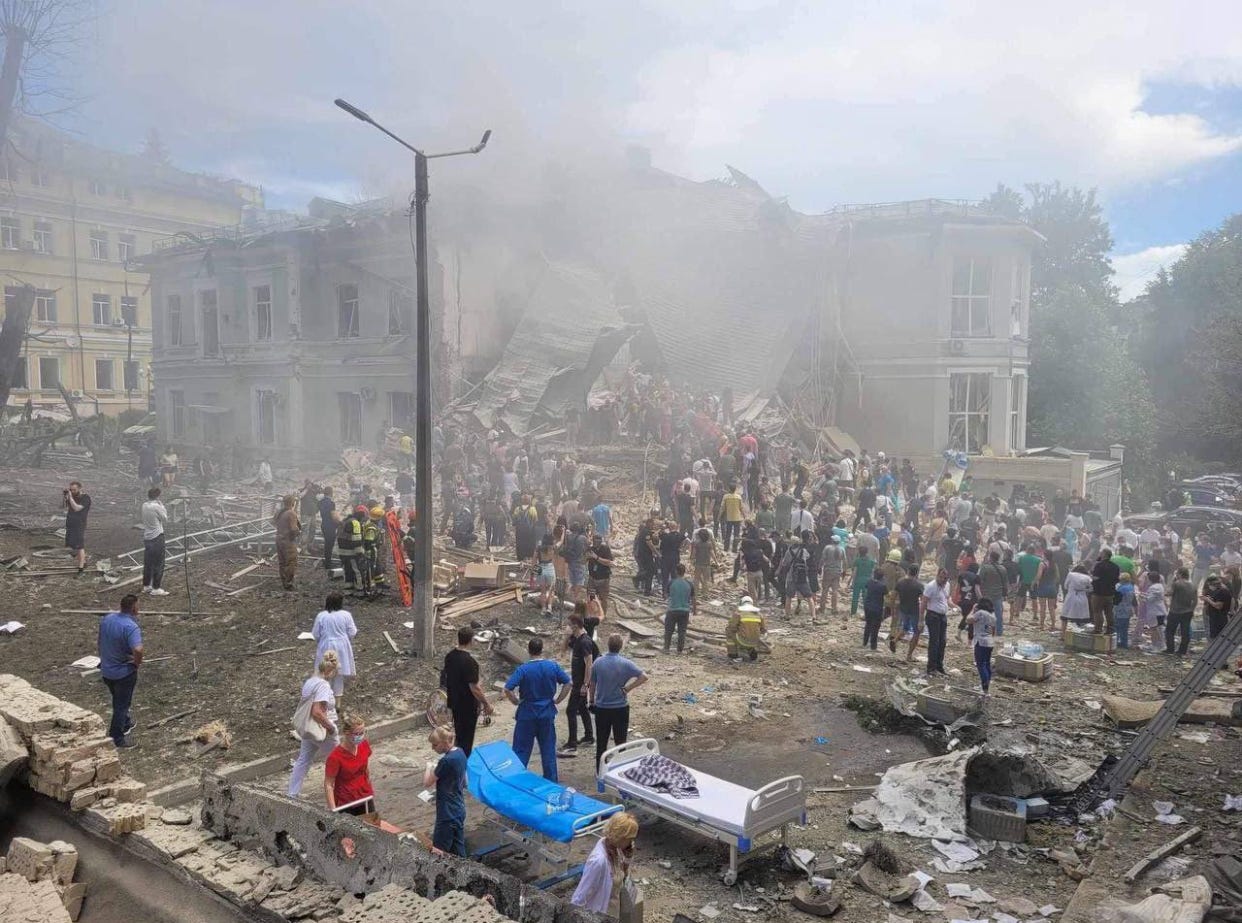 O terrorista Vladimir Putin, parceiro de Lula, Bolsonaro, Trump, Xi, Kim Jong-un, Le Pen e Orbán bombardeou nesta segunda-feira o hospital pediátrico de Kiev.
