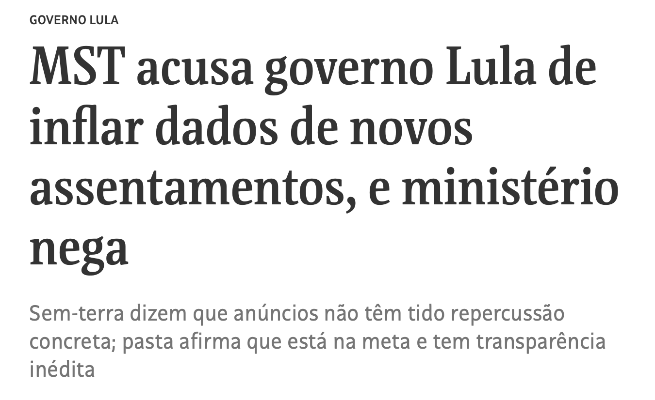 Segundo os MST, o governo Lulista anda contabilizando terrenos que não foram desapropriados pela justiça, para inflar os números do ministério do desenvolvimento agrário.