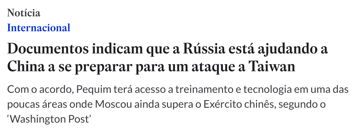 #TreinamentoTabajaraPutin treinará o exército de Xi Jiping para invadir TaiwanMarcio Pitliukset 30, 2025∙ Pago922CompartilharO ditador da China fechou um acordo com o ditador da Rússia para ensinar ao exército chinês como fracassar na invasão de Taiwan.Esta publicação é para assinantes pagos.Inscreva-seJá é um assinante pago? EntrarAnteriorPróximo