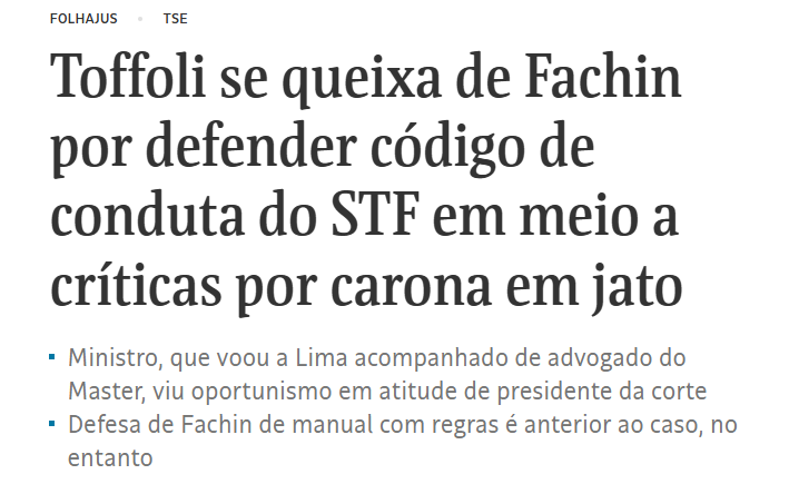 Por isso, não chega a ser surpreendente a notícia de que a proposta do Fachin de criar um Código de Conduta para a Corte tenha causado profunda irritação entre seus pares.