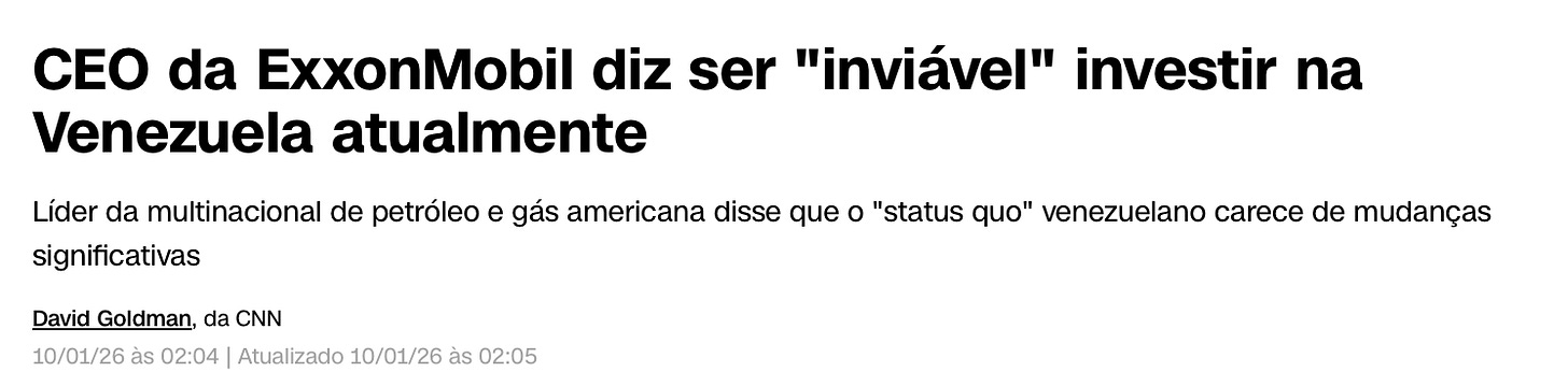 Acho que o Trump esqueceu de combinar com as petroleiras antes de destituir o Maduro. Lembra-me de Napoleão respondendo a um militar sobre qual era o plano após a invasão a um país, “depois a gente vê o que faz”.